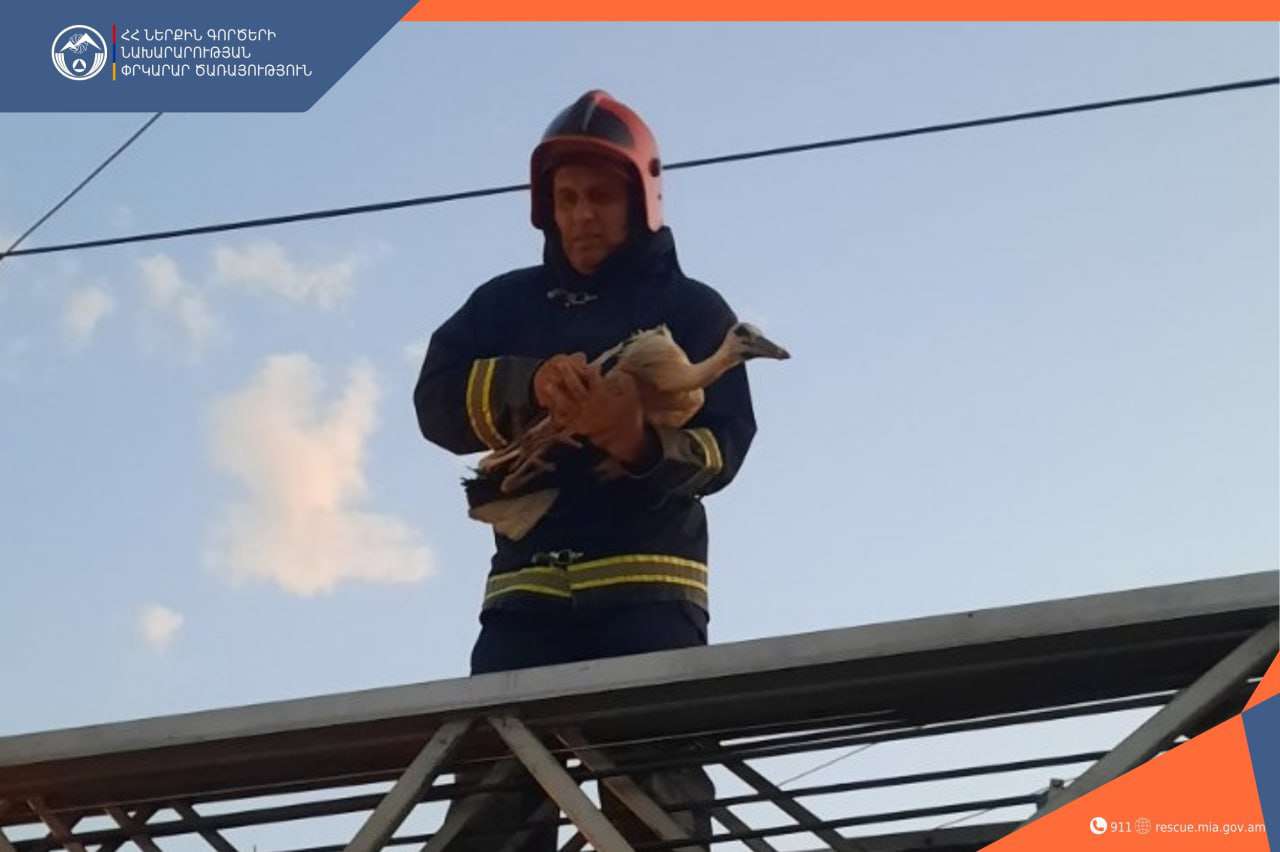 Փրկարարներն արագիլի ձագին բարձրացրել և դրել են բնի մեջ