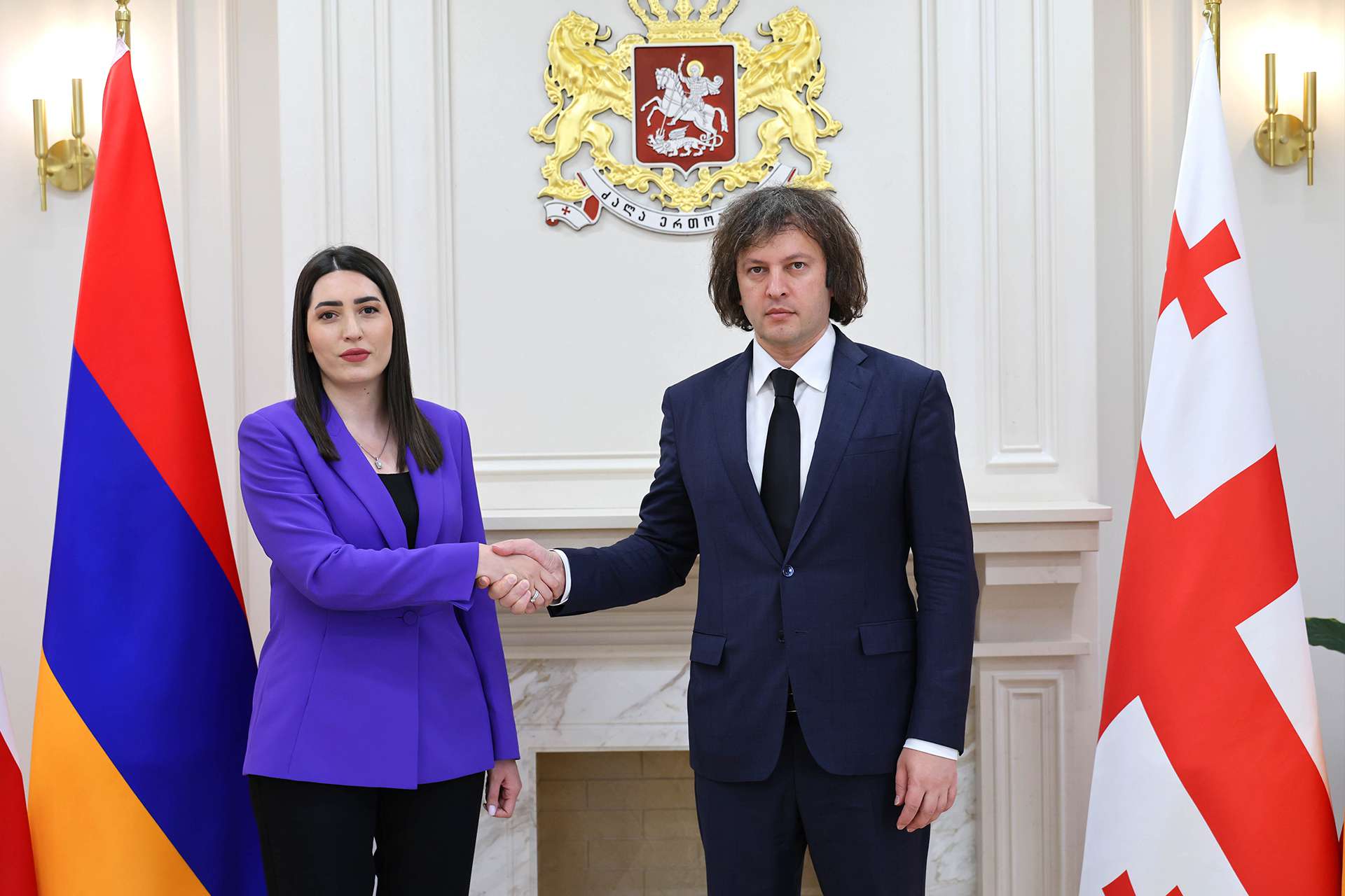 Վրաստանի վարչապետ Իրակլի Կոբախիձեն հանդիպել է Վրաստանում պաշտոնական այցով գտնվող հայաստանի Հանրապետության ներքին գործերի նախարար Արփինե Սարգսյանի հետ։