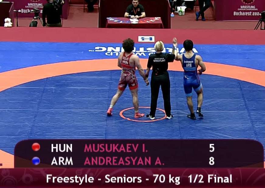 70 կգ քաշային Արման Անդրեասյանը 8։5 հաշվով հաղթել է հունգարացի ըմբիշ Իսմայիլ Մուսուկաևին և դուրս եկել Եվրոպայի առաջնության եզրափակիչ։