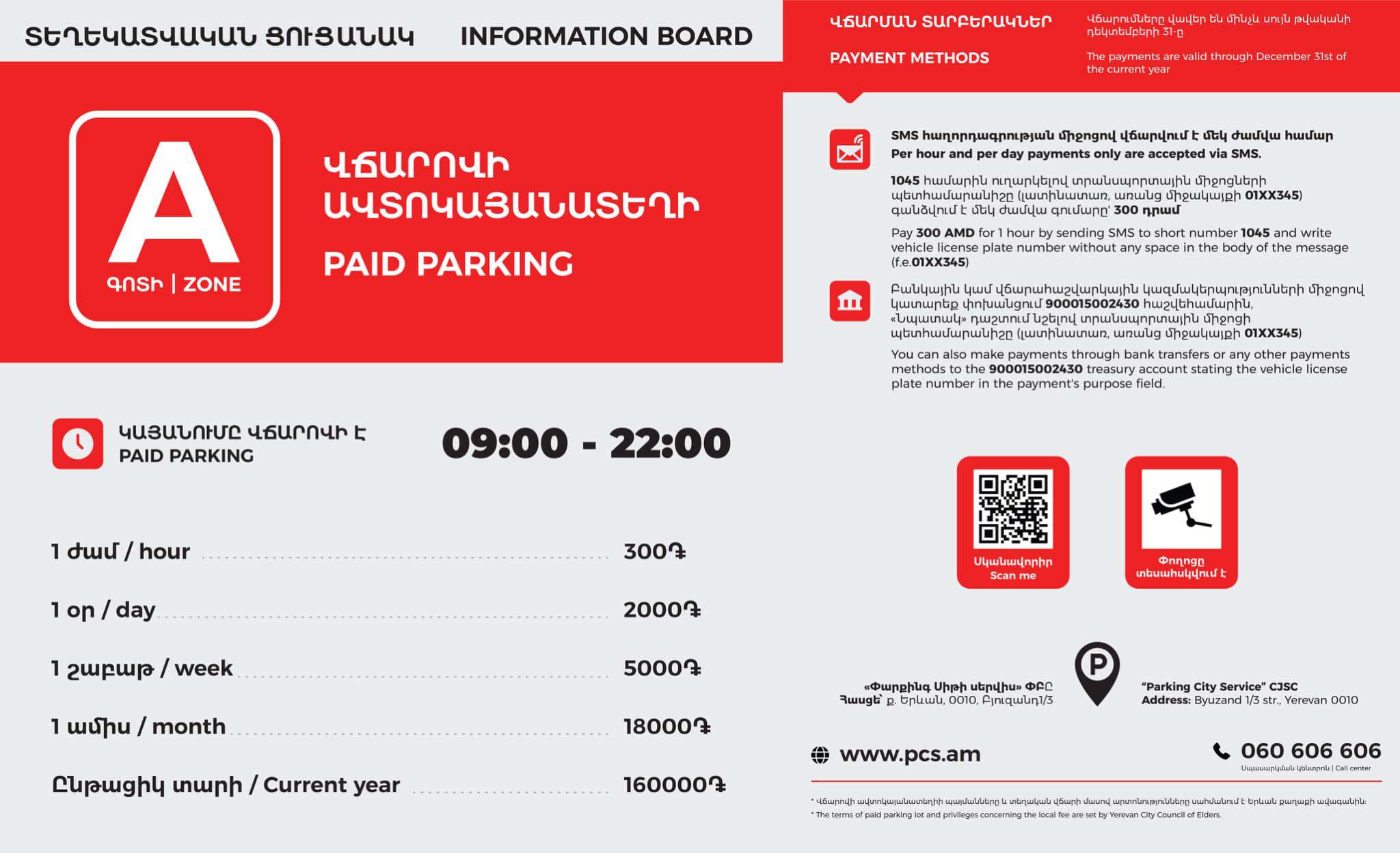 Տրանսպորտային միջոցի կայանումը ժամը 22:00-ից 09:00 անվճար է (ՄԱՆՐԱՄԱՍՆԵՐ)