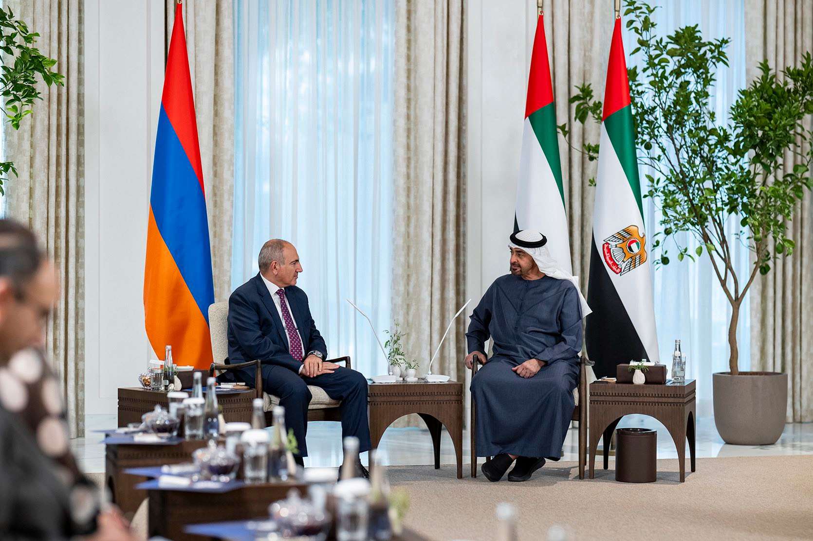 ԱՄԷ նախագահը ջերմորեն ողջունել է վարչապետ Փաշինյանին՝ ընդգծելով, որ Էմիրությունները մեծապես կարևորում են գործընկերային հարաբերությունները Հայաստանի հետ և պատրաստ են համատեղ քայլեր ձեռնարկել փոխշահավետ նախաձեռնությունների կյանքի կոչման ուղղությամբ։