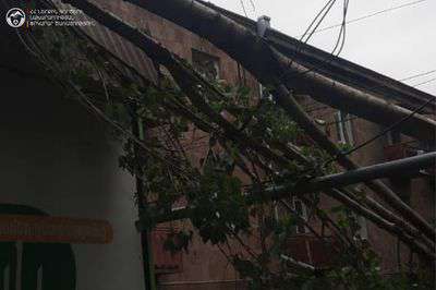 Փրկարարներն իրականացրել են տապալված ծառերի մասնատման և հեռացման, թուլացած թիթեղի ամրացման աշխատանքներ և կանխել երկաթե կառուցատարրերի ընկնելու վտանգը։