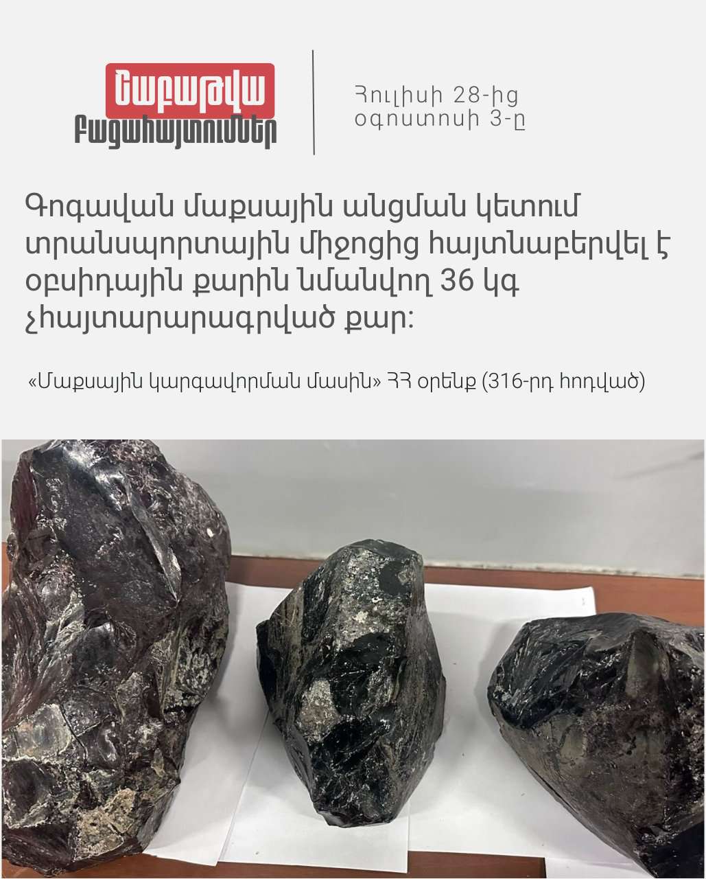 - Մաքսային ծառայողները կանխել են 36 կգ չհայտարարագրված քարի ներկրման փորձը
