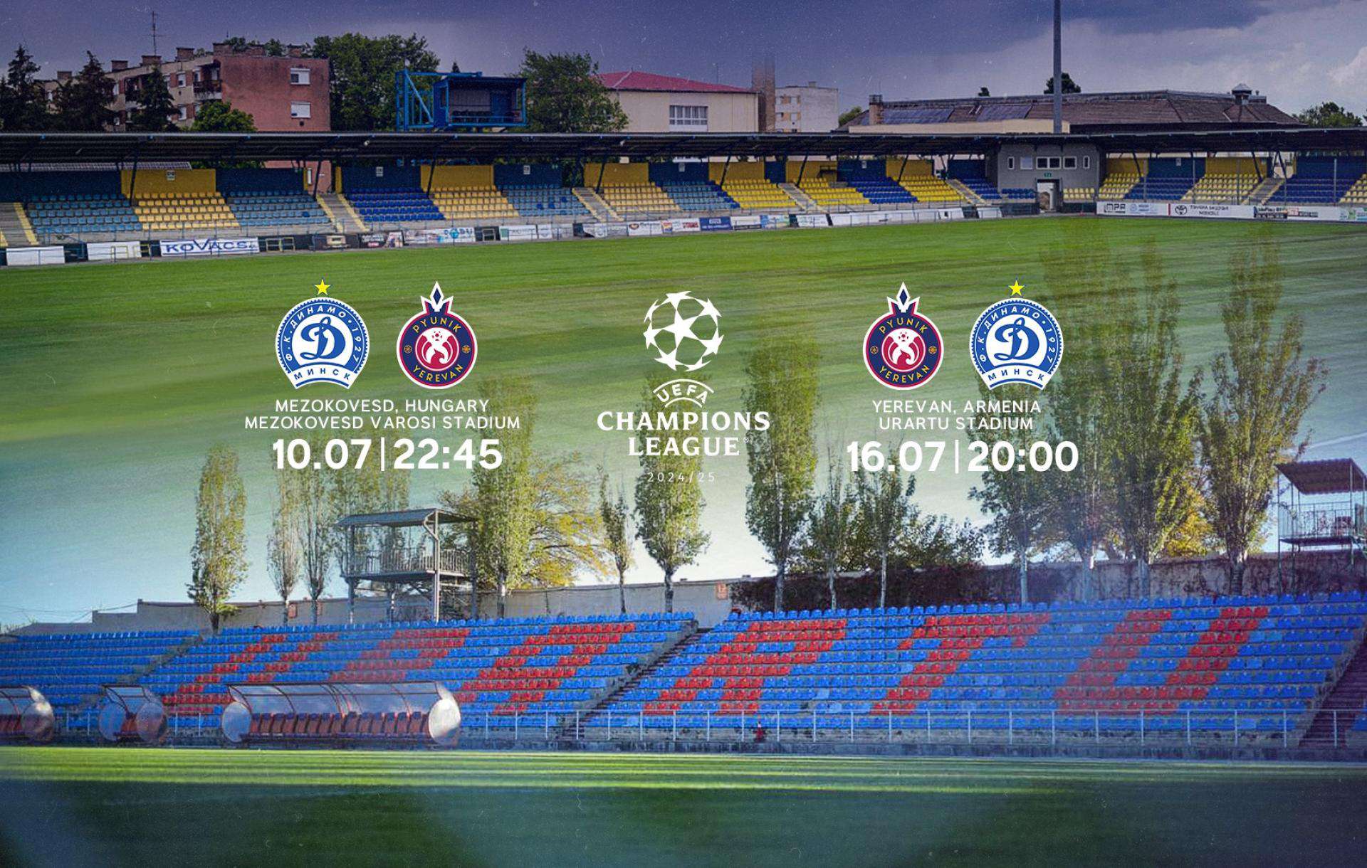 Չեմպիոնների լիգայի որակավորման առաջին փուլի Մինսկի «Դինամոյի» դեմ արտագնա հանդիպումը Հայաստանի չեմպիոնը կանցկացնի հուլիսի 10-ին: Մրցավեճը կկայանա հունգարական Մեզեկեվեշդ քաղաքի մարզադաշտում։ Խաղի սկիզբը՝ 22:45-ին