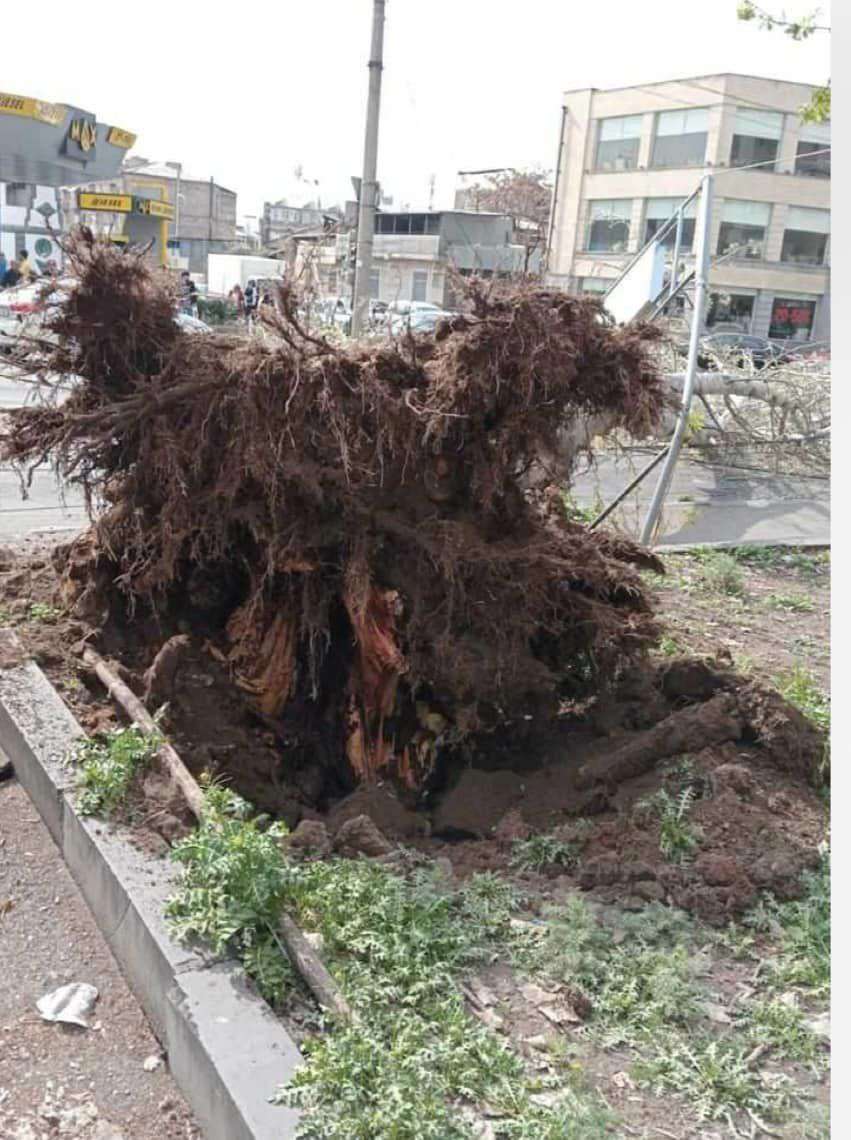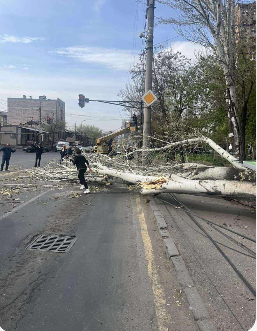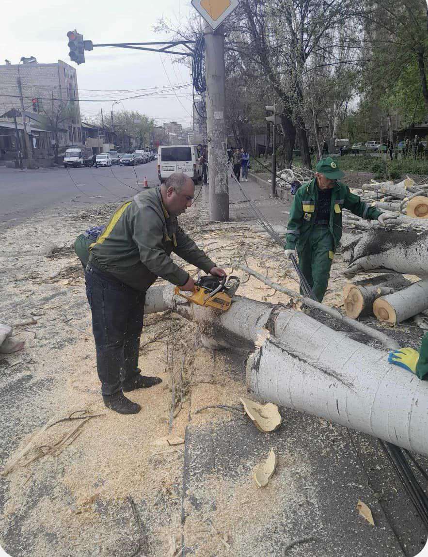 «Կանաչապատում և շրջակա միջավայրի պահպանություն» ՀՈԱԿ-ից հայնտնում են, որ այսօր Խորենացի-Քրիստափոր խաչմերուկում տապալվել է կենսունակության ավարտին մոտ երկու բարդի: